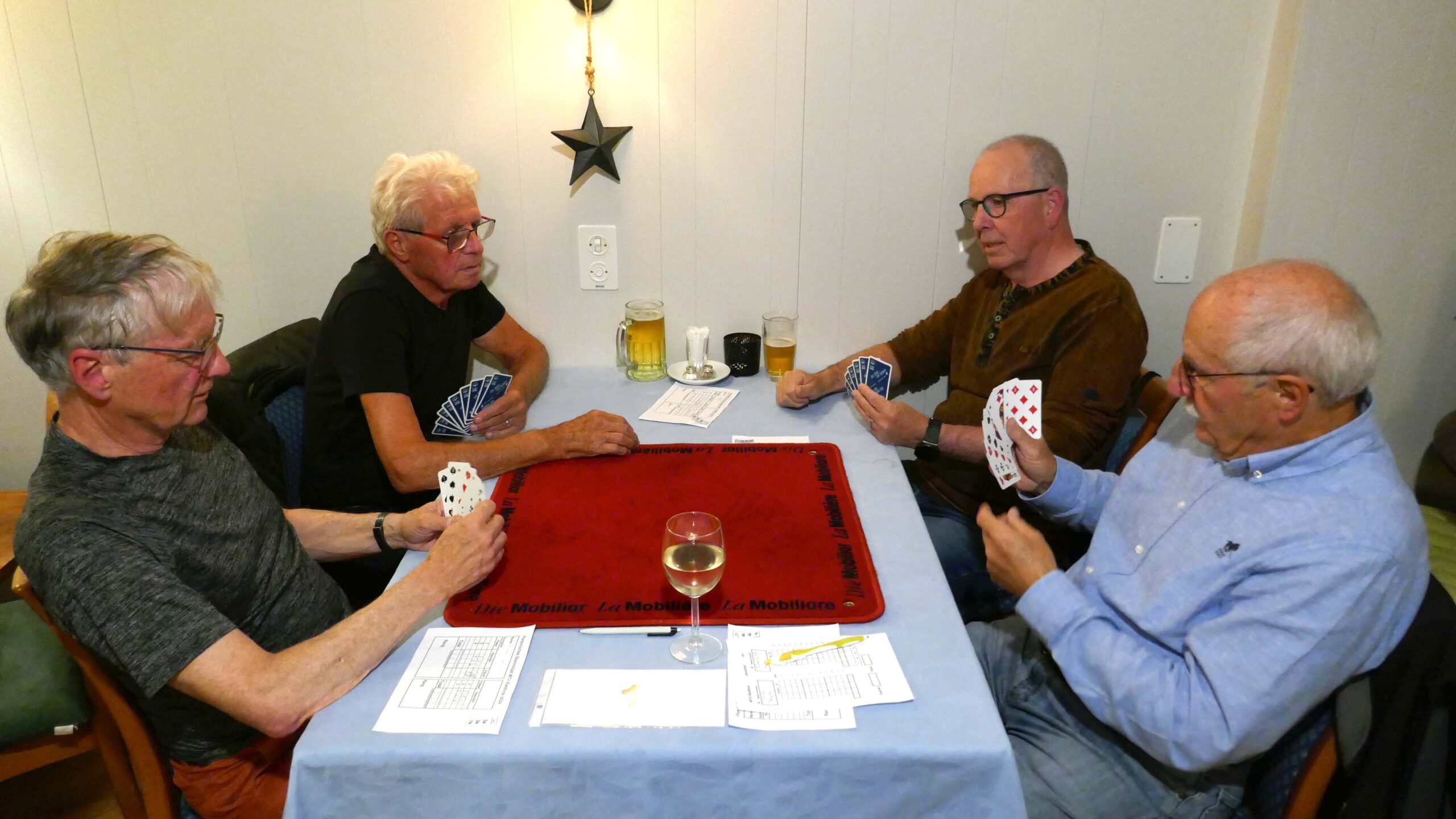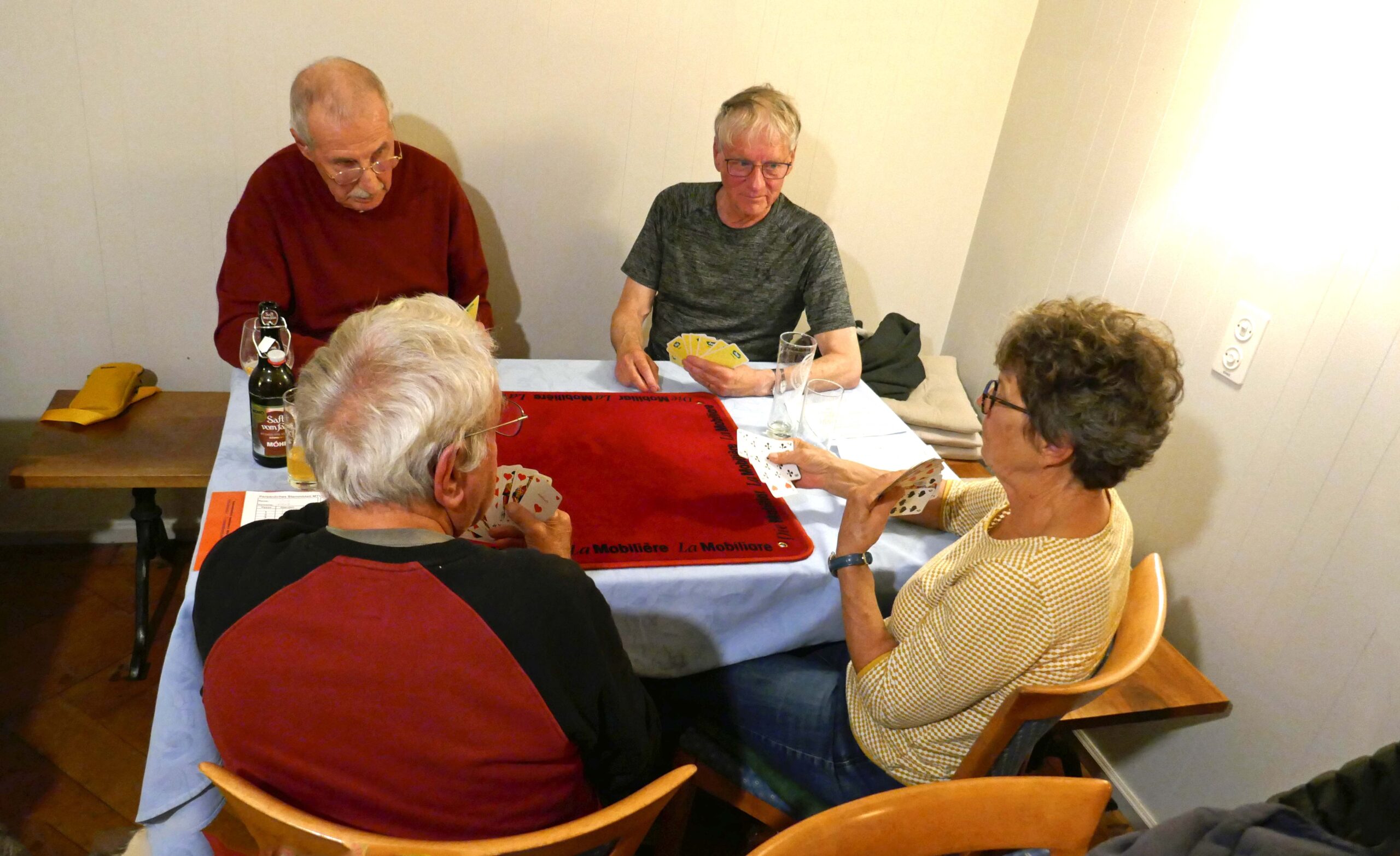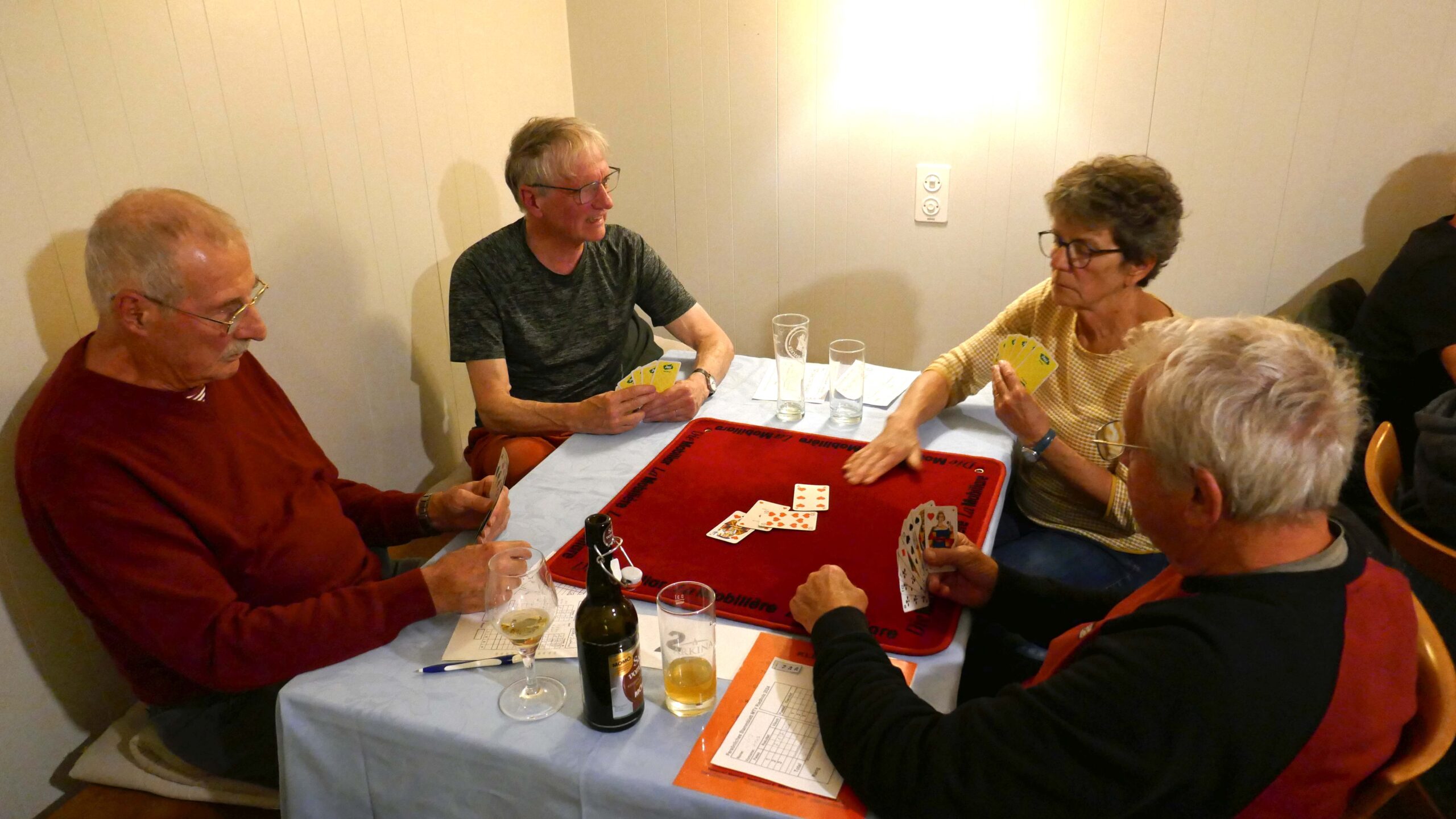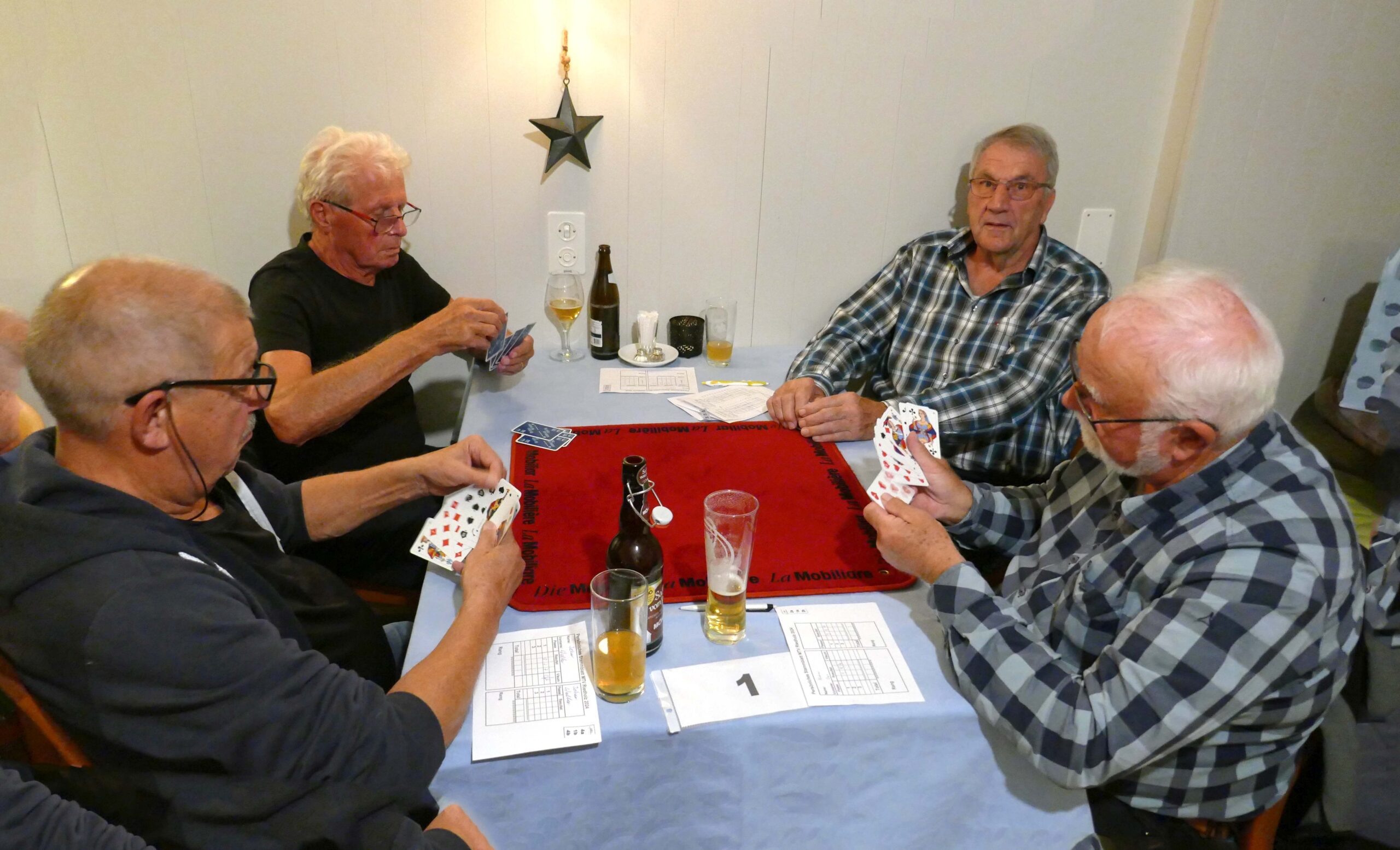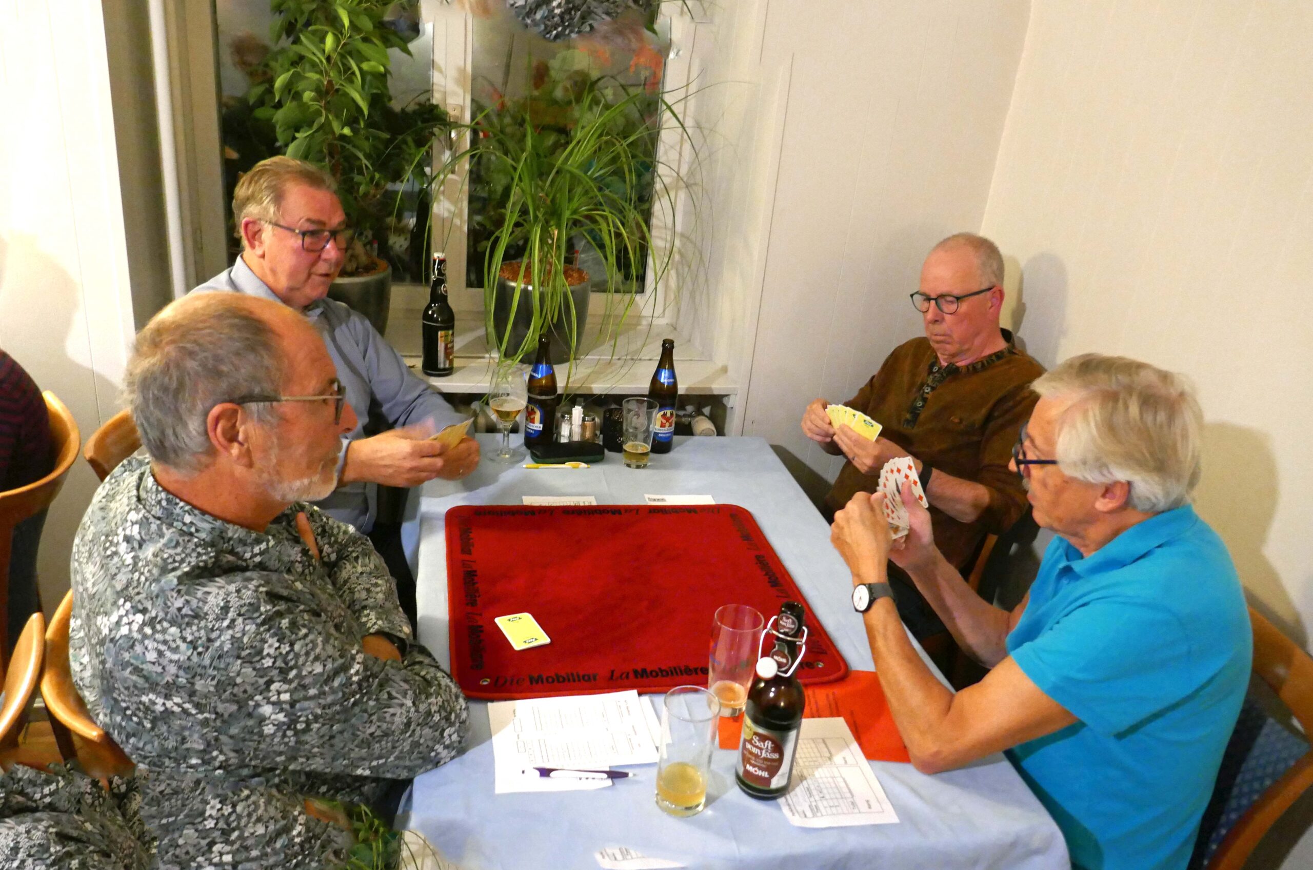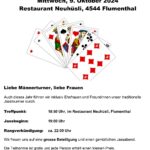 Jasstournier im Rest. Neuhüsli, Flumenthal, 9. Okt. 2024 Einladung geht erstmals auch an die Wanderkollegen Um diese Preise wird gespielt. Wo ist der Tellerpokal? Wir sind bereit. Gute Stimmung! Wir warten! Ruedi im Rechnungsbüro Wir beginnen! Es läuft gut! Alles Richtig gespielt! Wer macht Trumpf? Wem gehört dieser Stich? Wer spielt aus? Ich schiebe? Schaufel ist Trumpf! Dieser Stich gehört mir! Was soll ich trumpfen? Es wird gerechnet! Wer kommt zum Ausspielen? Wir sind bei der 3. Passe Es stimmt genau! Preise vom 4. – 16. Rang Gespendet vom Wirt Loui für den 16. Rang Willi im 1. Rang, Fredy im 2. Rang, Norbert im 3. Rang und Ruedi Beitrags-Autor:willi Beitrag veröffentlicht:11. Oktober 2024 Beitrags-Kategorie:Allgemein Weitere Artikel ansehen Vorheriger BeitragWengi, 24. Sept. 2024 Nächster BeitragMessen, 22. Okt. 2024 Das könnte dir auch gefallen Wangen a.d.A., 15. Okt. 2019 15. Oktober 2019 Belpberg, 16. April 2019 16. April 2019 Attiswil, 6. April 2021 6. April 2021