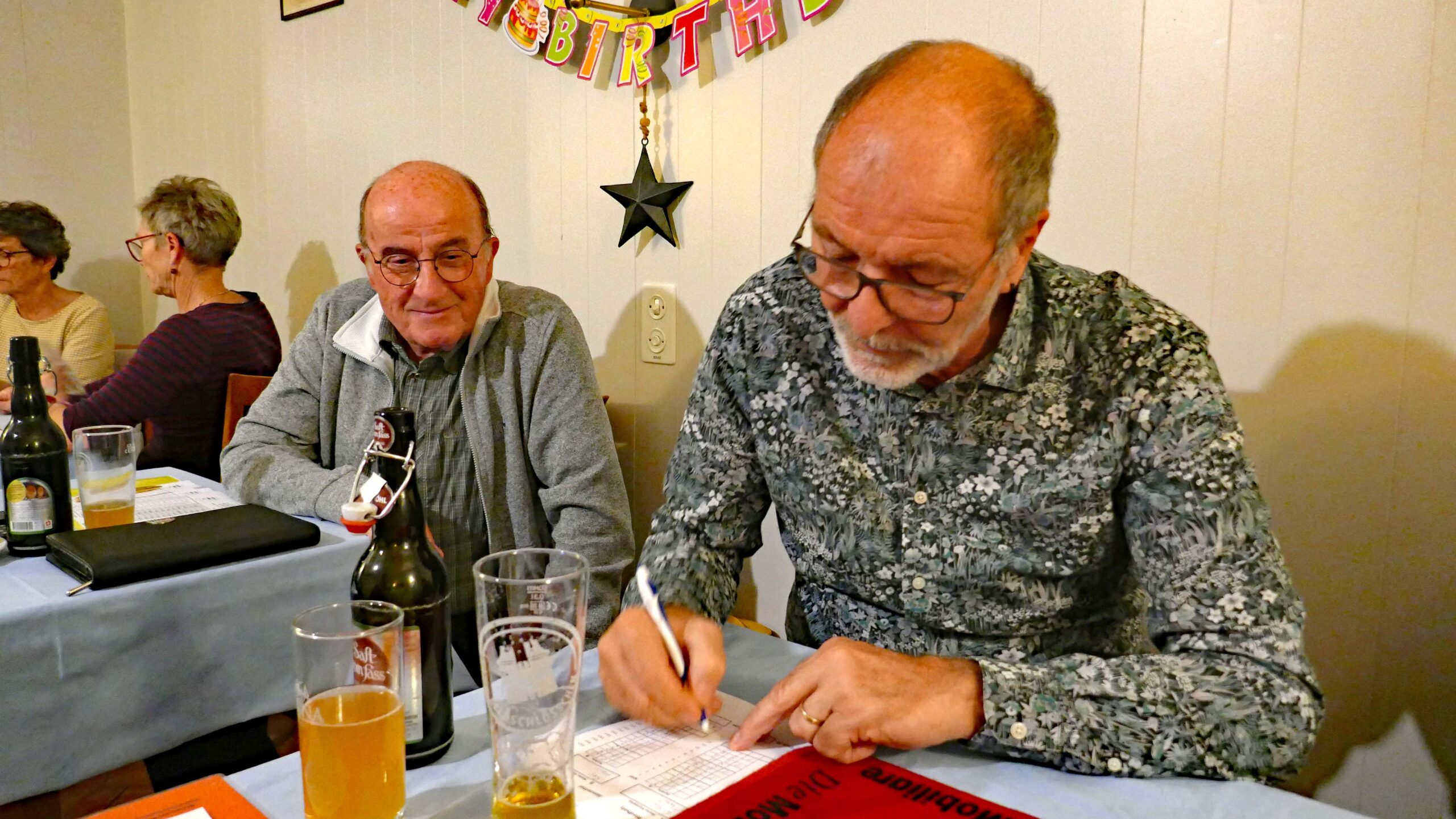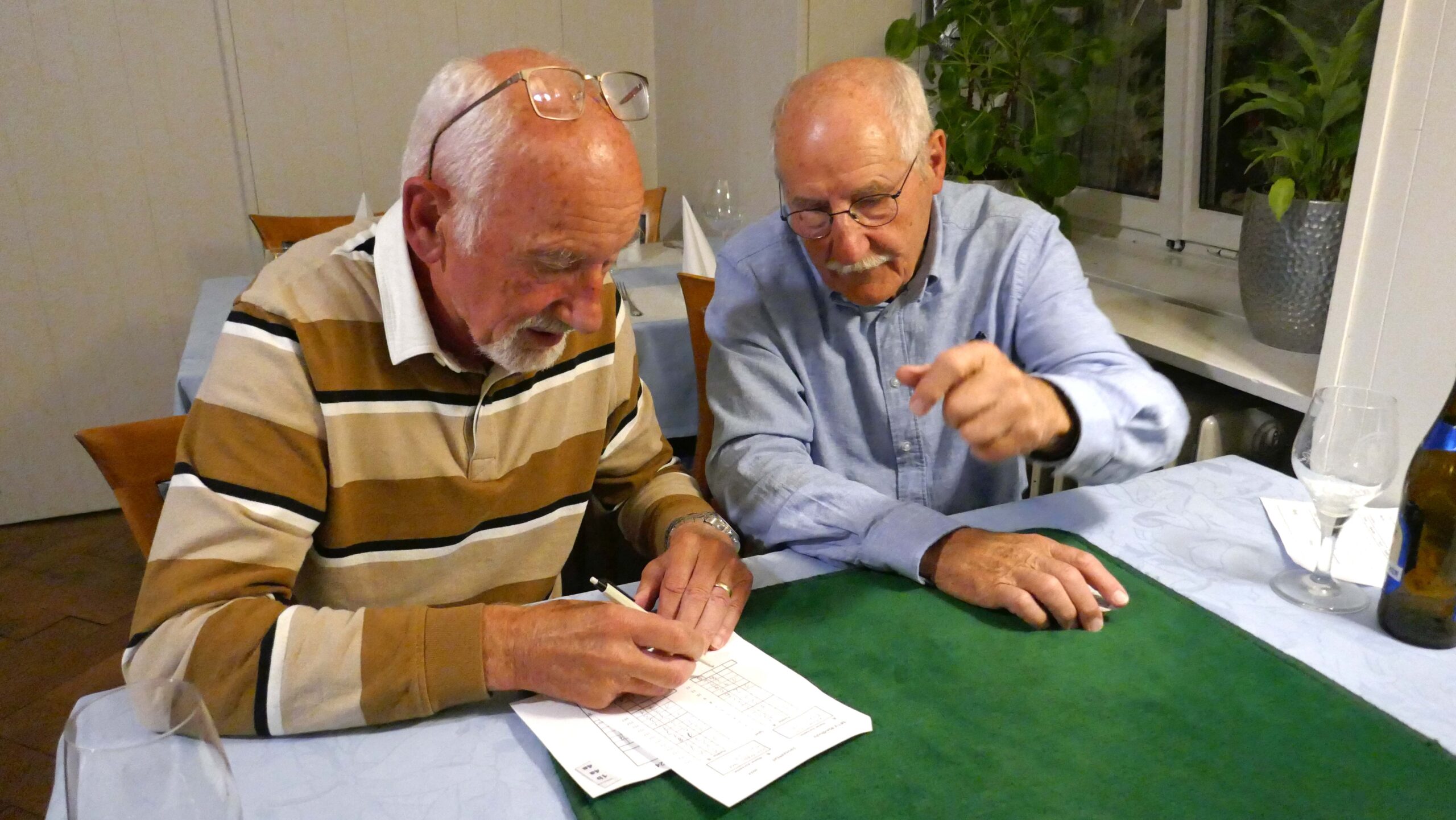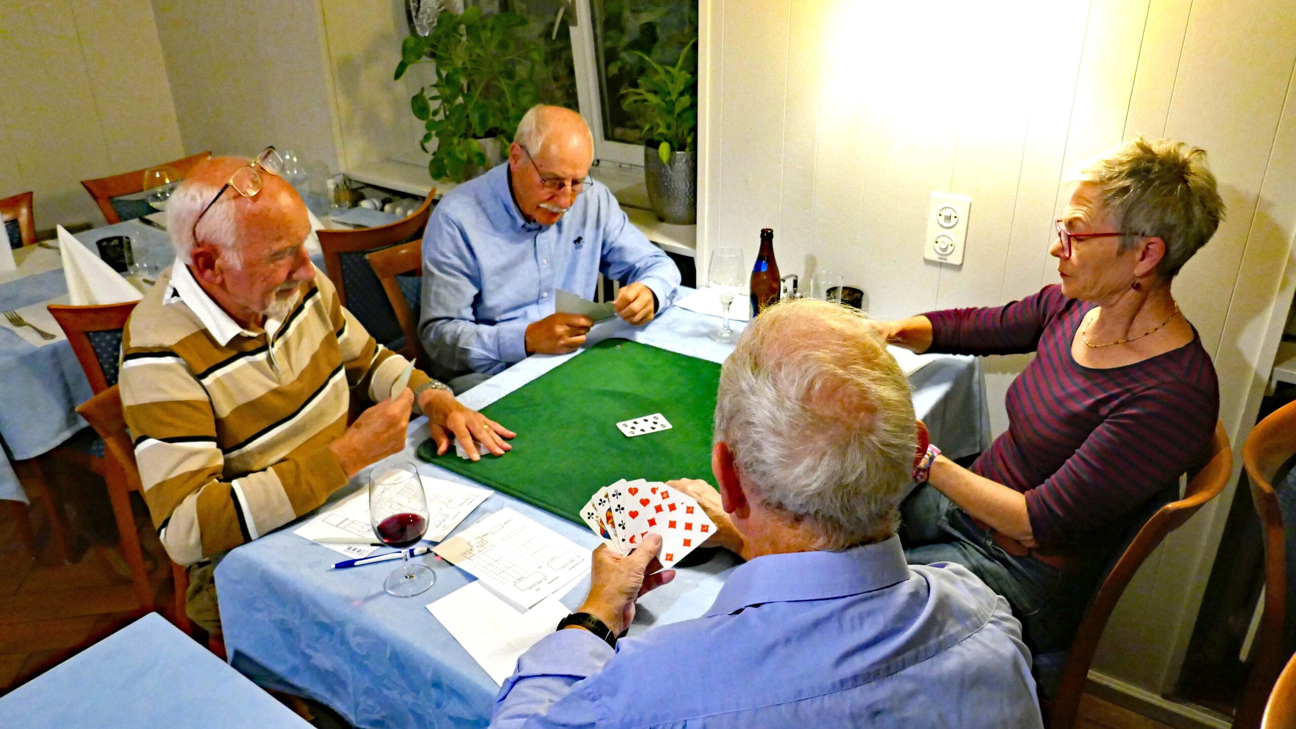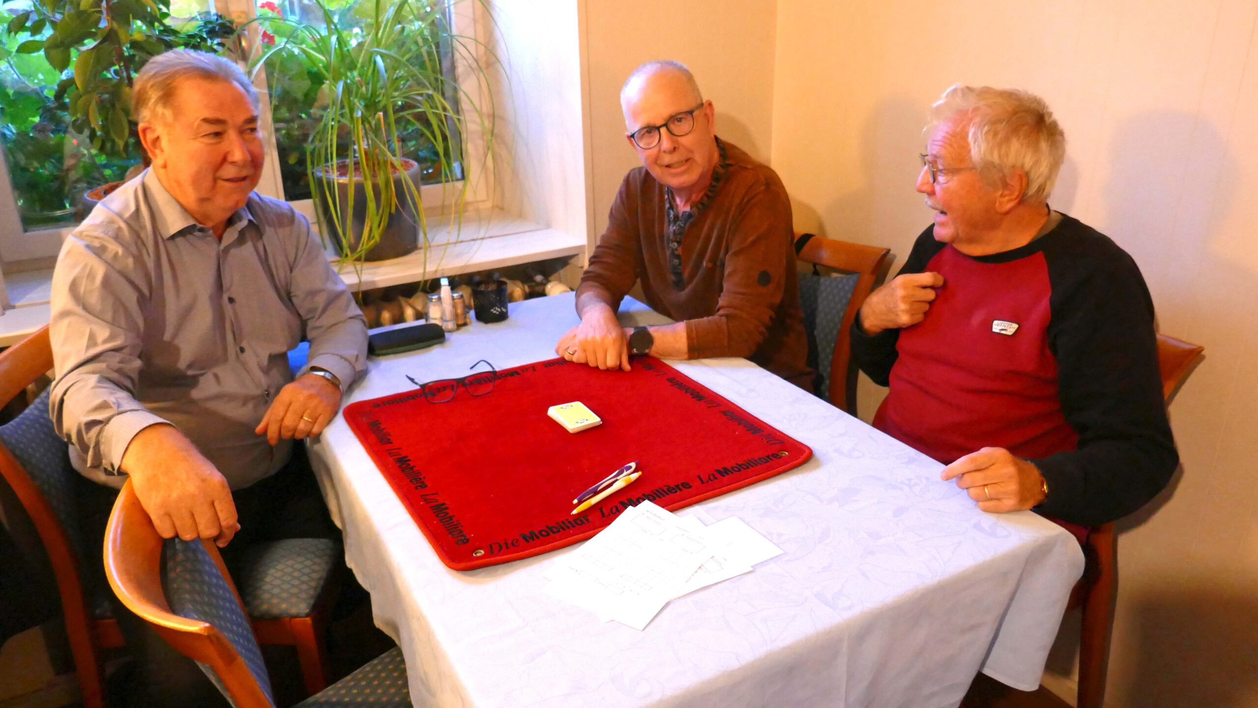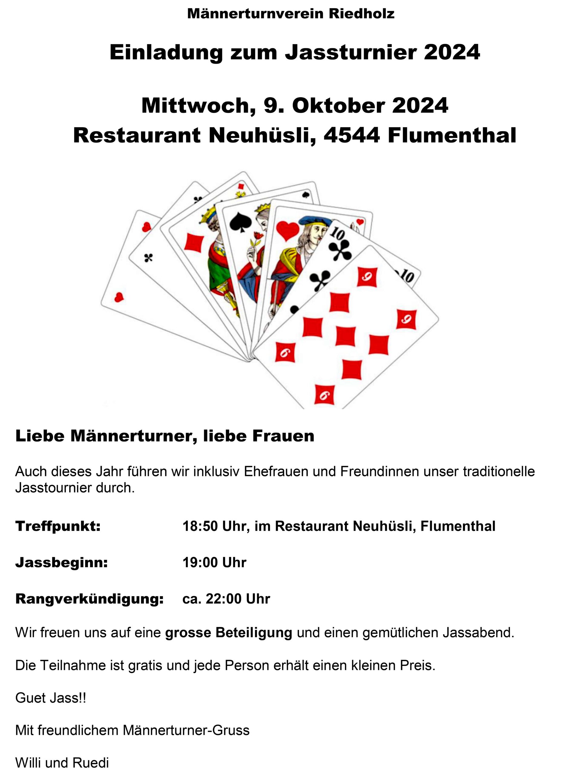 Jasstournier im Rest. Neuhüsli, Flumenthal, 9. Okt. 2024 Einladung geht erstmals auch an die Wanderkollegen Um diese Preise wird gespielt. Wo ist der Tellerpokal? Wir sind bereit. Gute Stimmung! Wir warten! Ruedi im Rechnungsbüro Wir beginnen! Es läuft gut! Alles Richtig gespielt! Wer macht Trumpf? Wem gehört dieser Stich? Wer spielt aus? Ich schiebe? Schaufel ist Trumpf! Dieser Stich gehört mir! Was soll ich trumpfen? Es wird gerechnet! Wer kommt zum Ausspielen? Wir sind bei der 3. Passe Es stimmt genau! Preise vom 4. – 16. Rang Gespendet vom Wirt Loui für den 16. Rang Willi im 1. Rang, Fredy im 2. Rang, Norbert im 3. Rang und Ruedi Beitrags-Autor:willi Beitrag veröffentlicht:11. Oktober 2024 Beitrags-Kategorie:Allgemein Weitere Artikel ansehen Vorheriger BeitragWengi, 24. Sept. 2024 Nächster BeitragMessen, 22. Okt. 2024 Das könnte dir auch gefallen Wangen a.d.A., 15. Okt. 2019 15. Oktober 2019 Belpberg, 16. April 2019 16. April 2019 Attiswil, 6. April 2021 6. April 2021