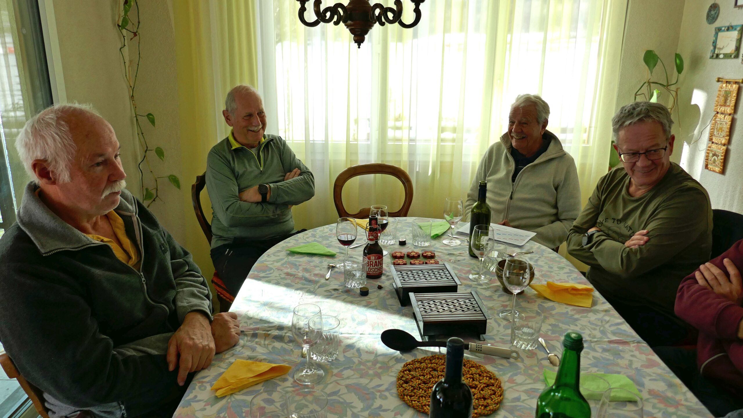 Schlusswanderung rund um Riedholz zu Weber Res, 5. Dez. 2023 Beim Waldhaus Fotograf Willi Riedholz Apéro bei Res Hier wird das Essen vorbereitet Coq au Vin von Res zubereitet Res erhält das Maximum an Gourmetpunkten Rückblick auf Wanderungen 2023 Ausblick Wanderungen 2024 Liedermacher Ruedi sorgt für gute Stimmung Wir sind auch gut im Singen Dessert und Kaffee wartet Herzlichen Dank an Res für die grosszügige Gastfreundschaft. Beitrags-Autor:willi Beitrag veröffentlicht:6. Dezember 2023 Beitrags-Kategorie:Allgemein Weitere Artikel ansehen Vorheriger BeitragLommiswil, 28. Nov. 2023 Nächster BeitragChlaushöck, 13. Dez. 2023 Das könnte dir auch gefallen Napf, 1. Okt. 2019 1. Oktober 2019 Velotour/Bräteln, 10. Juli 2022 10. Juli 2022 Lägern, 15. Juni 2021 17. Juni 2021